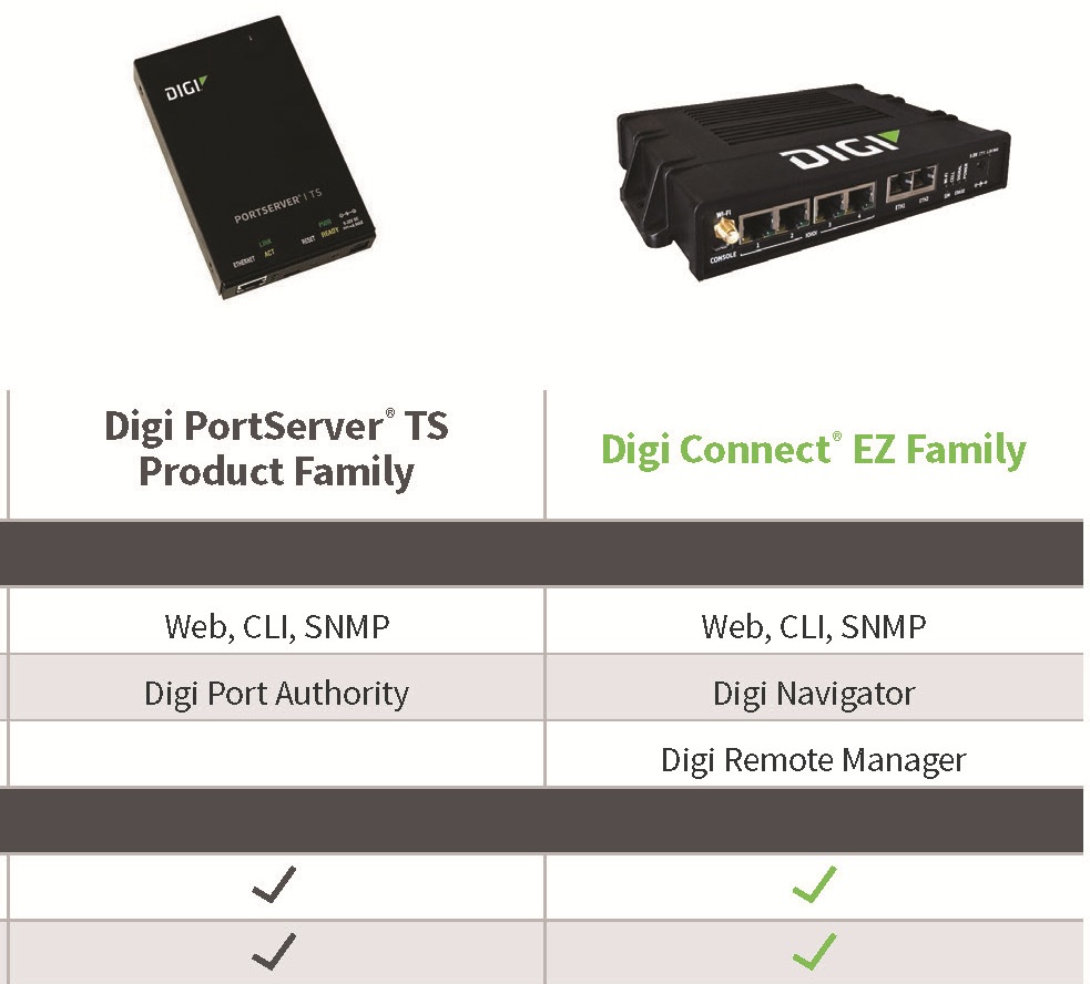 Digi PortServer TS产品长期以来一直是自动化连接的可靠选择,而新的Digi Connect EZ 系列产品则以闪电般的速度和先进的连接选项提高了标准